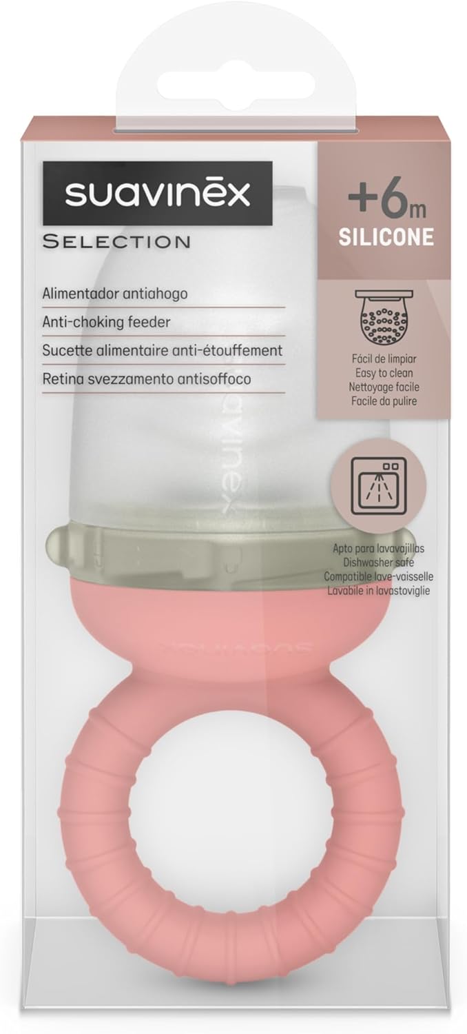 Suavinex, Chupete Fruta Bebé, Alimentador Antiahogo de Silicona Rosa