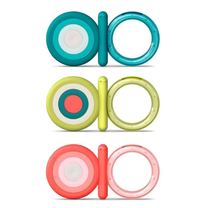 - Con relieves. Mordedor de dentición con distintos relieves que masajean las encías del bebé y ayudan a fortalecer los nuevos dientes
