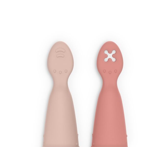 Estas cucharas de silicona con forma simétrica de los mangos permite el uso con ambas manos, sin necesidad de rotar la muñeca, convirtiendo estas pre-cucharas en el complemento ideal para iniciarse en el método BLW.