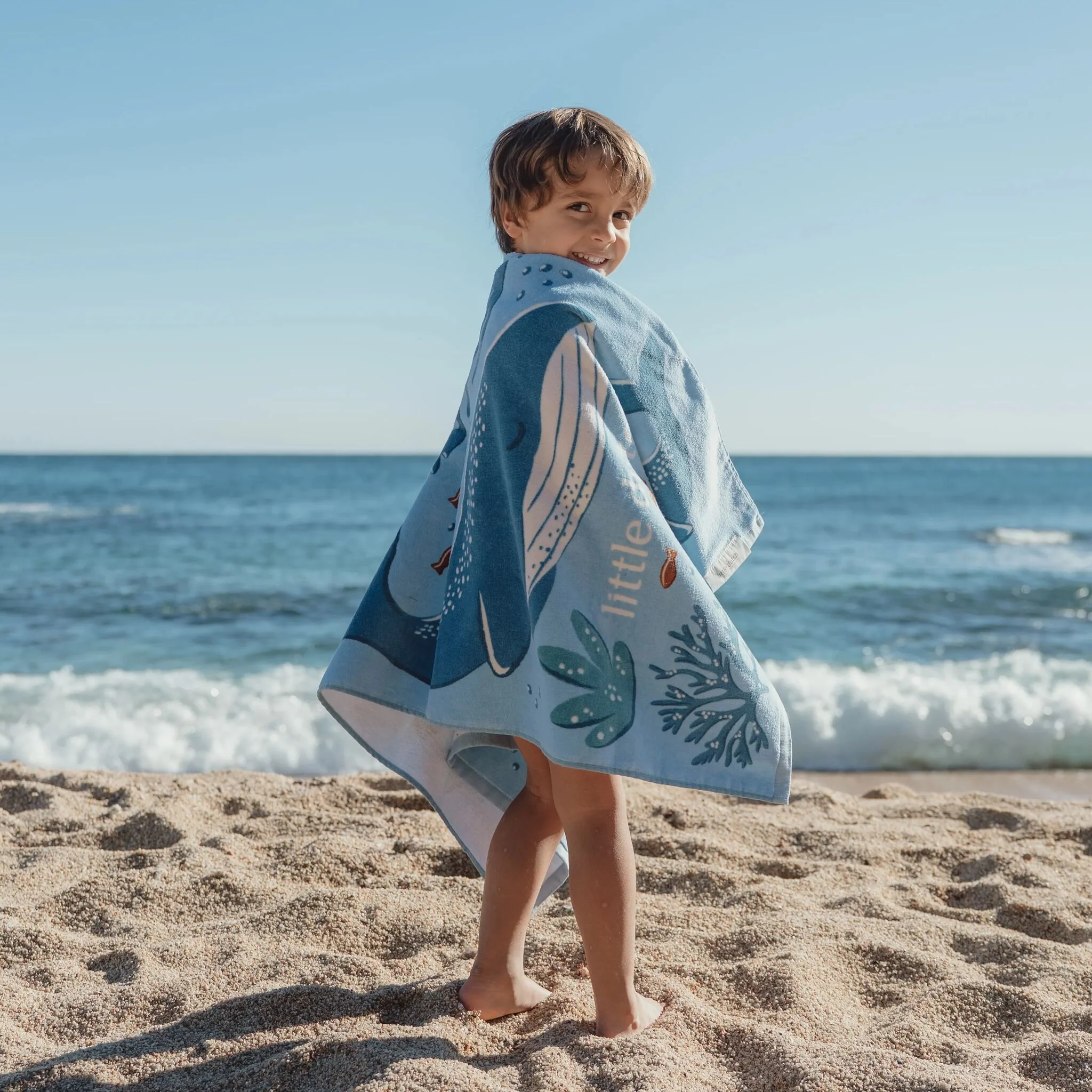 Después de chapotear, es hora de secarse, y con estilo natural, esta playa azul hecha a mano por Ocean World Blue es perfecta. Esta tela de fieltro artesanal está hecha de 100% orgánico y tiene un tamaño mediano de 60 x 120 cm: un precio ideal para pequeñas playas. El alegre estampado de amigos marinos sobre un fondo azul fresco le sacará una sonrisa veraniega a tu pequeño. Perfecta para la playa, la piscina o después del baño en casa.