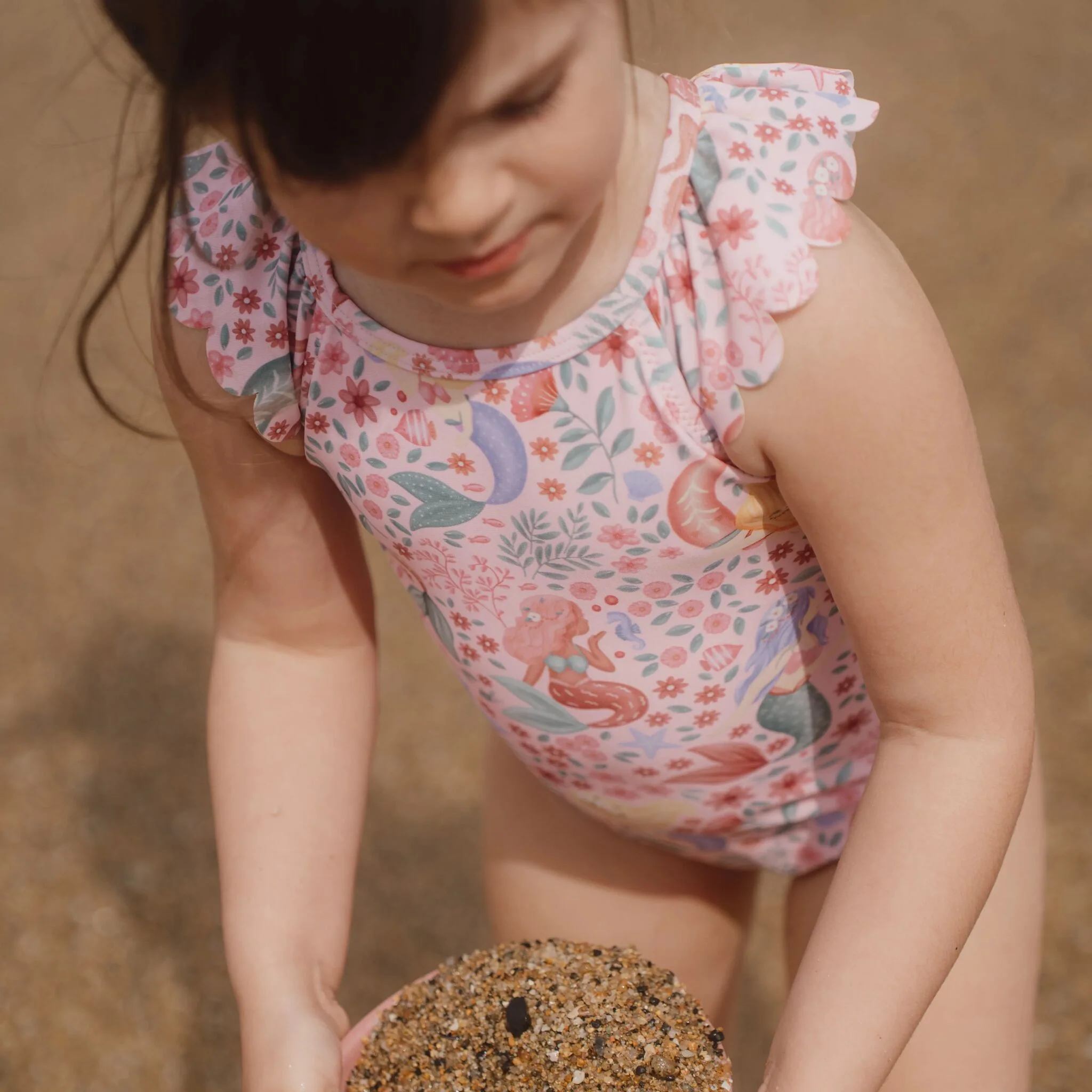 Traje de baño rosa con estampado de sirena.