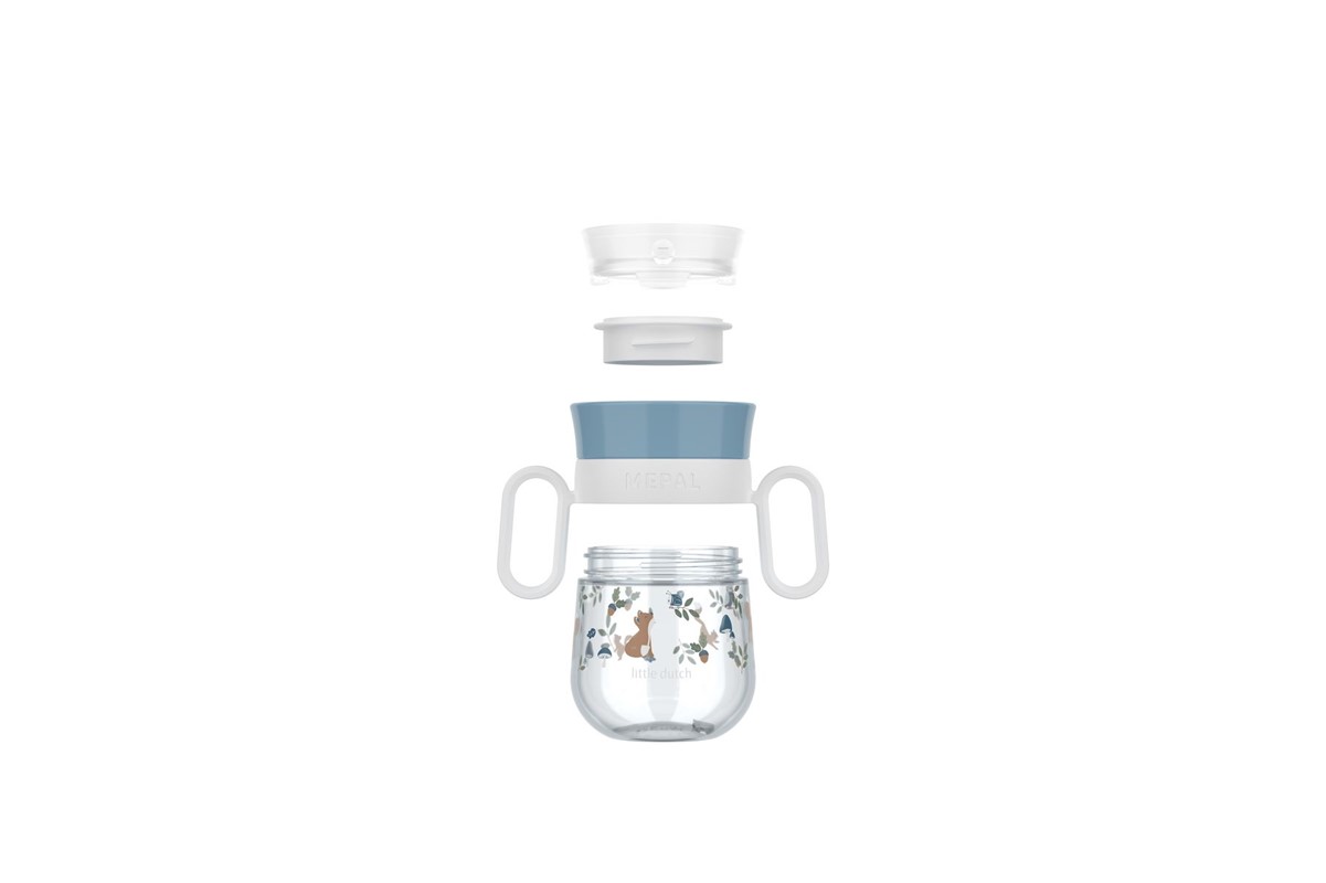 Vaso 360 ° Mepal Mio para Little Dutch, para niños a partir de 9 meses que aprenden a beber. El vaso para niños permite beber por todo el borde de la taza. La tapa transparente permite al niño ver el contenido y evita que todo se derrame a la vez. El vaso 360 °de plástico de alta calidad tiene un contenido de 300 ml y es totalmente a prueba de fugas. Todos los productos de Mepal son duraderos y libres de BPA para años de uso.